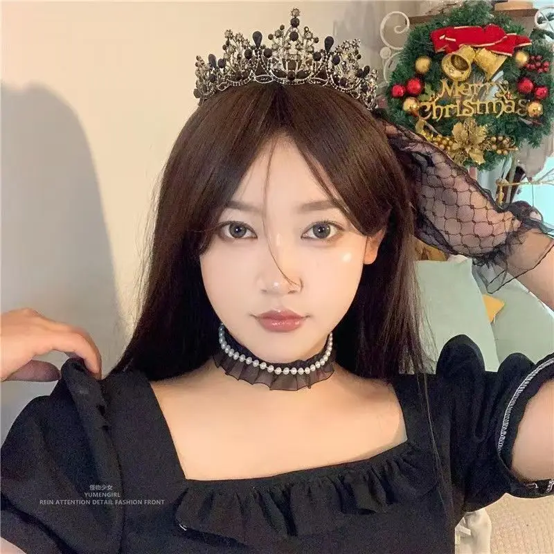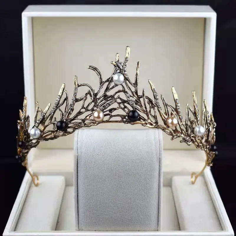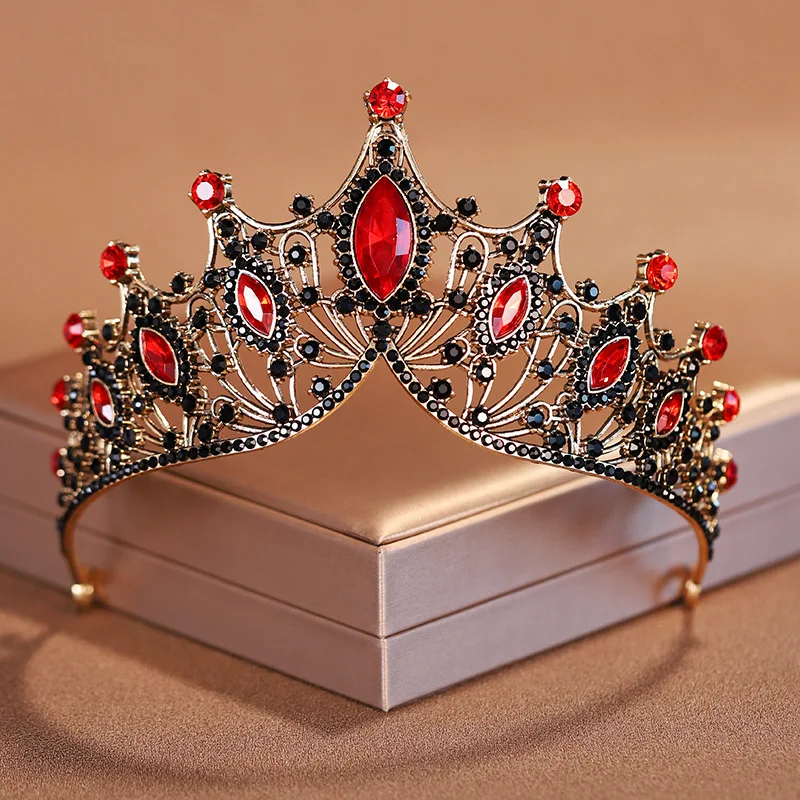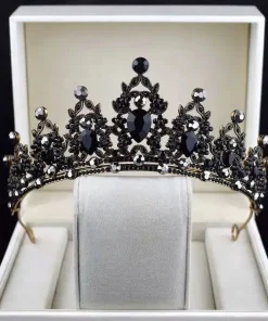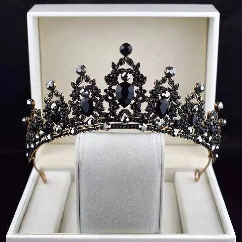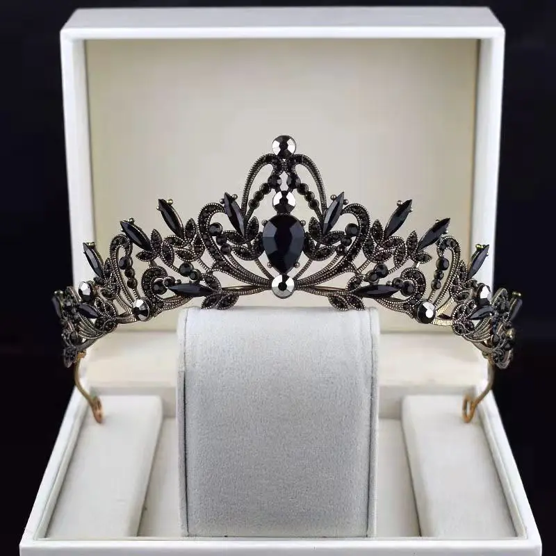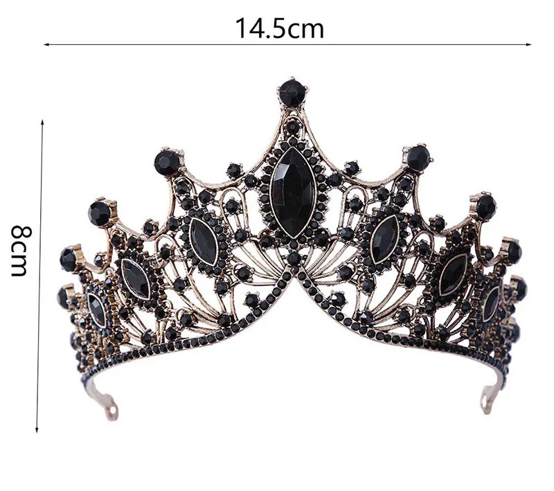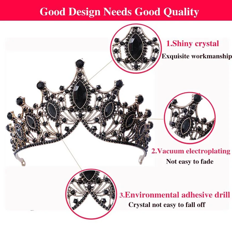 Baroque Black Crown for Women Wedding Bridal Tiara Hair Accessories Vintage Crystal Bride Tiaras and Crowns Marriage Queen Crown