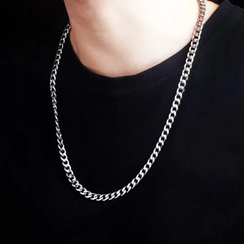 Stainless Steel Chain Necklace Long Hip Hop for Women Men on The Neck Fashion Jewelry Gift Accessories Silver Color Choker